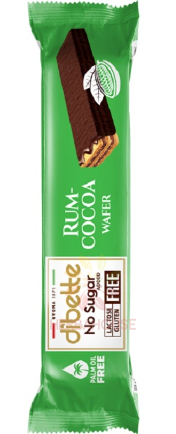 Dibette NAS Bezlepková oblátka plnená kakaovým krémom s rumovou príchuťou v tmavej čokoláde so sladidlom (26g)