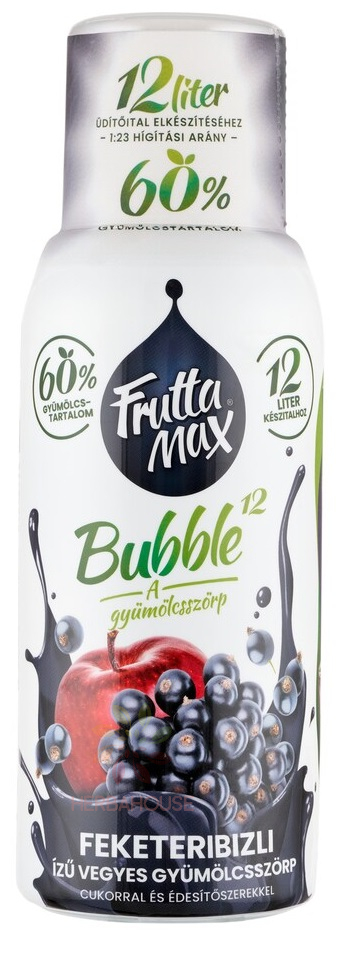 Fruttamax ovocný sirup s príchuťou čiernych ríbezlí s ovocným podielom min. 60% na 12 litrov hotového ovocného nápoja. Výborne sa hodí k príprave domácich limonád a na ochutenie teplých i studených nápojov alebo kokteilov.