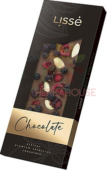 Lissé Horká čokoláda s ríbezľami, malinami a kešu orieškami so sladidlom (100g)